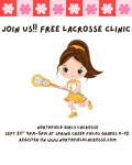 Please join us on Sept 21st for a free 1 hour lacrosse clinic. Session will be held from 4pm - 5pm at Spring Creek Fields in Northfield. Clinic is open for girls in grades K-12. We would love to see you there, and hey.. bring a friend or two!!